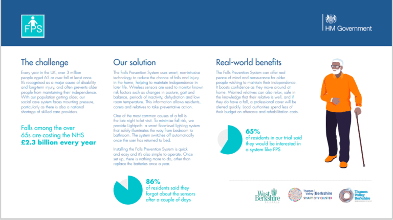 Earlier this year the Thames Valley Berkshire Smart City Cluster launched a set of challenges which they wanted local businesses to tackle, and provided funding to bring these projects to life. Our bid led by Coraledge and in partnership with IoT Stars won the competition and we are busy working on our offering to help reduce the number of falls suffered by older people in West Berkshire. It is a fact of life that as we get into our senior years people tend to fall more often, and the injuries are more profound and recovery takes longer.